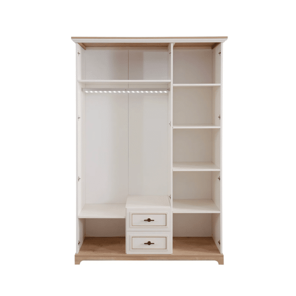 مساحة تخزين واسعة: صممت الخزانة بعدّة وحدات تخزين على الطراز التركي، حيث يحتوي على أدراج وأرفف لتتمكن من تخزين كافة الملابس والأدوات.