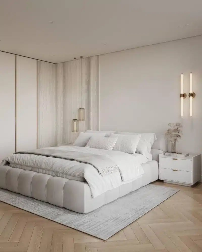 سرير يتألق بملاذ للراحه والاسترخاء بعد يوم طويل حيث متانه الخشب واناقه الاسفنح ونعومه القماش
