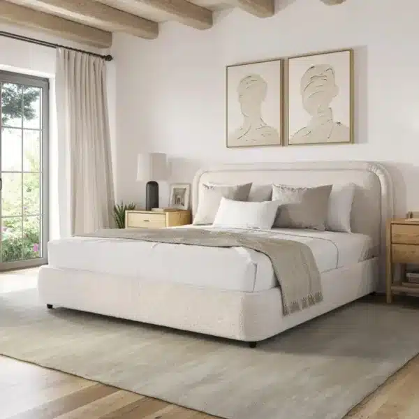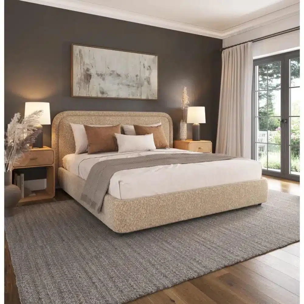 •الوصف: سرير يتألق بملاذ للراحه والاسترخاء بعد يوم طويل حيث متانه الخشب واناقه الاسفنح ونعومه القماش