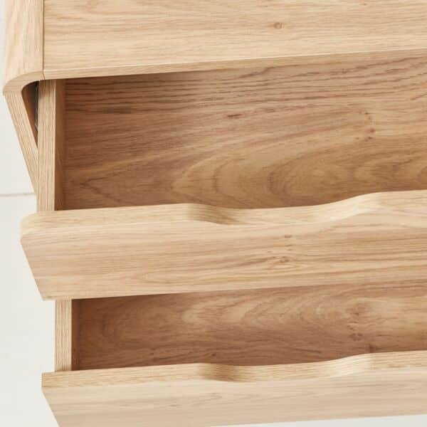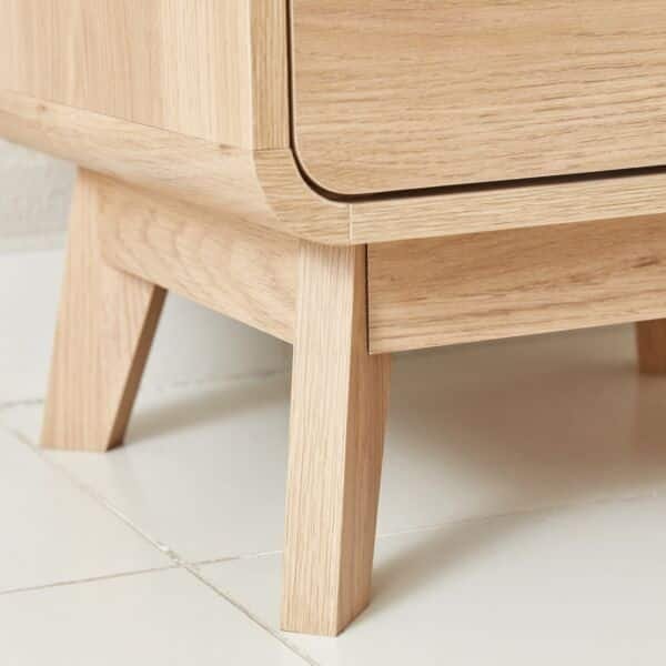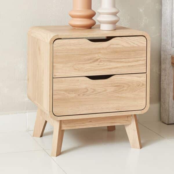 مصنوعة من خشب هندسي عالي الجودة مع رقائق معدنية قوية، وتضم درجين واسعين لتخزين مقتنياتك الأساسية من كتب، وإكسسوارات، وأدوات شخصية، مما يساعدك في الحفاظ على ترتيب غرفة نومك بشكل منظم.