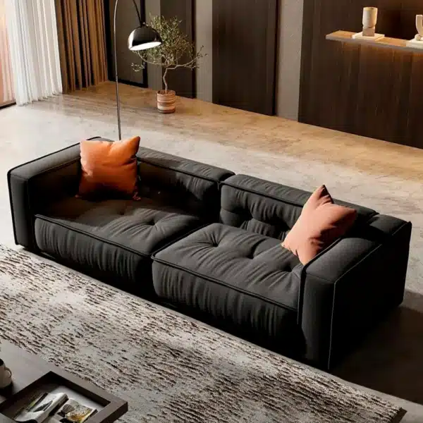 تقدم كنبة زاوية بريفكس من ديفرنت هاوس تصميمًا عصريًا يجمع بين الأناقة والراحة. الكنبة بمقعدين بلون أسود أنيق وتنجيد كتان عالي الجودة يضفي لمسة فاخرة على أي غرفة معيشة.