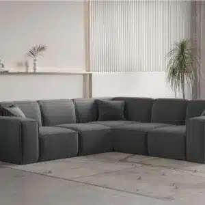 استمتع بالراحة والفخامة مع كنبة زاوية زمردة، المصممة لتضيف لمسة عصرية إلى أي غرفة معيشة. تتميز الكنبة بمزيج الألوان البيج، الأسود، والرمادي، مع تنجيد مخمل فخم يضفي لمسة راقية ويجعل كل جلسة أكثر راحة.