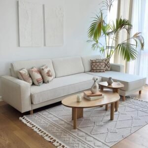 تمنحك كنبه بونو الفاخرة مزيجًا متوازنًا من الراحة والفخامة، بتصميم عصري يضفي لمسة راقية على غرفة المعيشة. باللون الأوف وايت الأنيق وقماش الكتان الفاخر، تضيف هذه القطعة مظهراً مميزاً يتناغم مع مختلف أنماط الديكور. بفضل قاعدة خشبية متينة وإطار مصنوع من الخشب الصلب، توفر الكنبة ثباتاً عالياً مع خفة في المظهر. أما حشوة المقعد والوسائد الخلفية فهي مصنوعة من أسفنج أبانمي وألياف بوليستر مع أكياس غير منسوجة، لتمنحك جلسة مريحة تدوم لفترات طويلة.