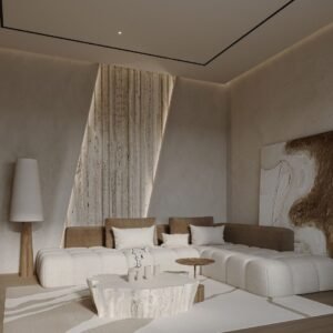 تمتاز الكنب بخامات عالية الجودة من خشب صلب متين، مع تنجيد من قماش الكتان الأنيق بلوني الأبيض والبني، لتخلق تبايناً أنيقاً يعكس جمال التفاصيل. الوسائد الثابتة تمنح دعماً مثالياً للظهر، بينما الحشوات المصنوعة من الإسفنج والألياف تضمن راحة فائقة طوال الاستخدام.