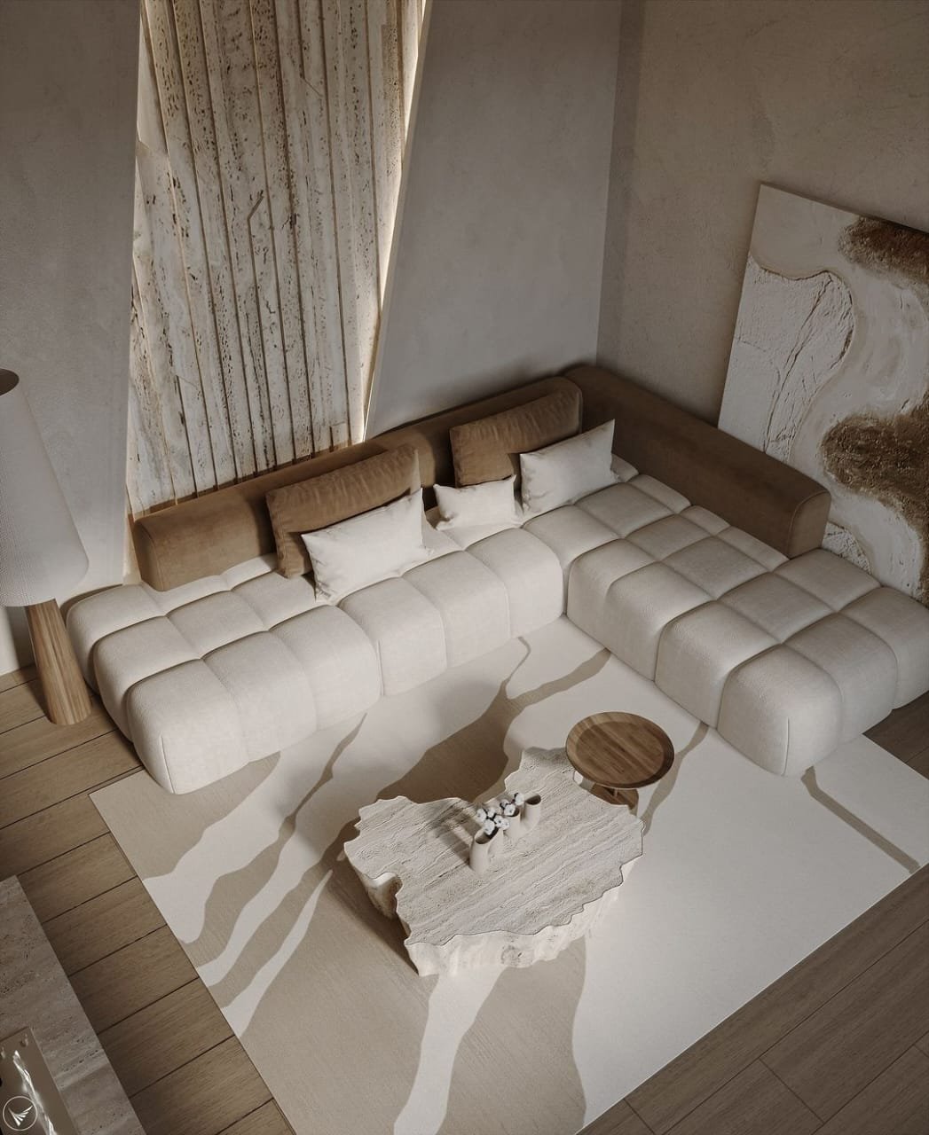 تنجيد قماش كتان عصري بألوان أبيض وبني أنيقة.