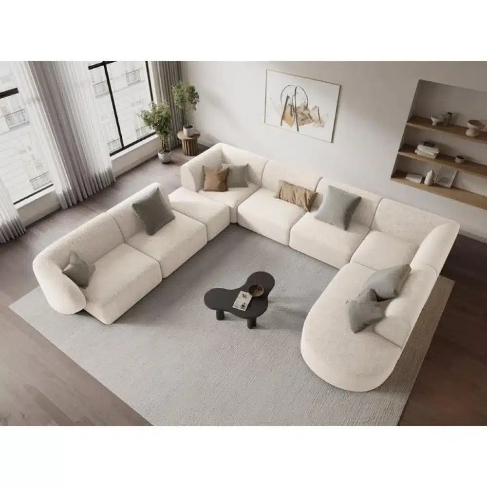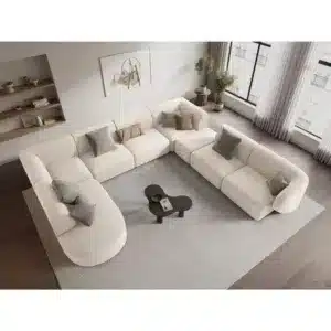 تم تنجيدها بقماش البوكلية الفاخر الذي يمنح ملمسًا ناعمًا وأناقة استثنائية، إضافة إلى قاعدة خشبية قوية مصنوعة من خشب صلب لضمان الثبات والمتانة. تعتبر هذه الكنبة خيارًا عمليًا لمحبي أطقم كنبايات حديثة أو الباحثين عن أريكة بوكليه راقية تلبي متطلبات الراحة اليومية.