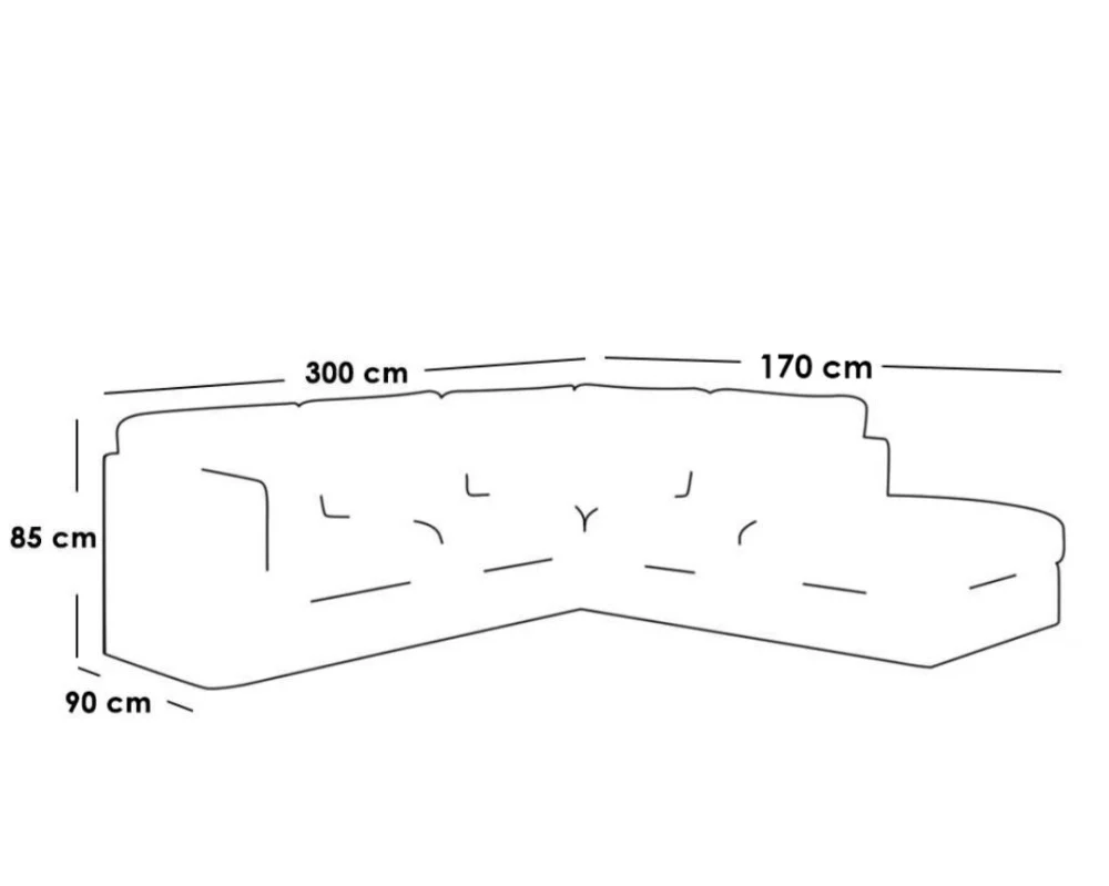 الأبعاد: العرض 300 سم × الطول 170 سم × العمق 90 سم × الارتفاع 80 سم