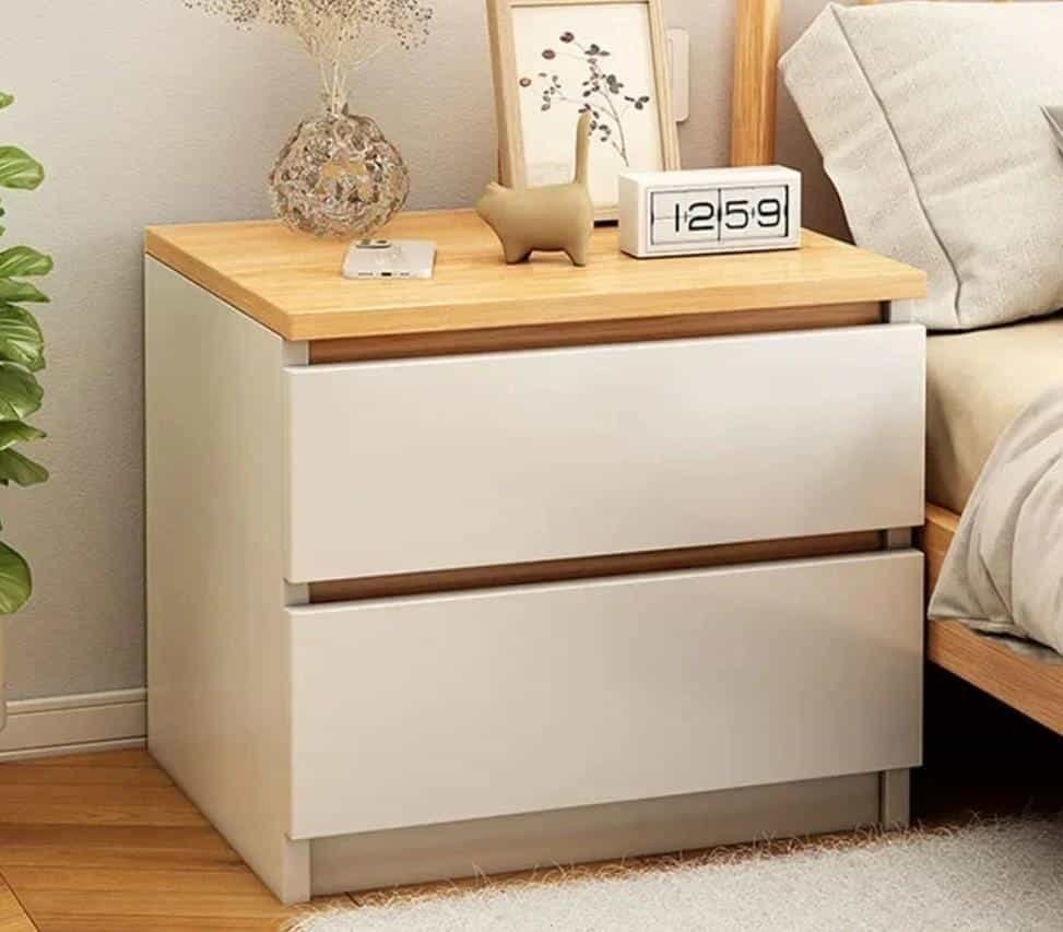 تتميز كومدينة مكتس بسطح علوي خشبي فاتح يمنح الغرفة مظهرًا طبيعيًا ودافئًا، بينما يضيف اللون الأبيض في الهيكل لمسة من الصفاء والنقاء تناسب مختلف أنماط غرف النوم المودرن أو السكاندينافي.